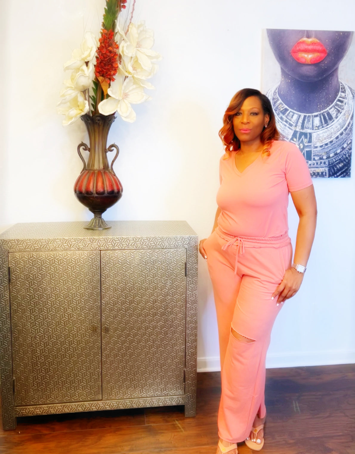 French Terry Laser Cut Pants Drawstring Waist and Pockets With Matching Top. Models Wearing Large.